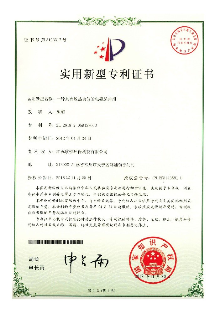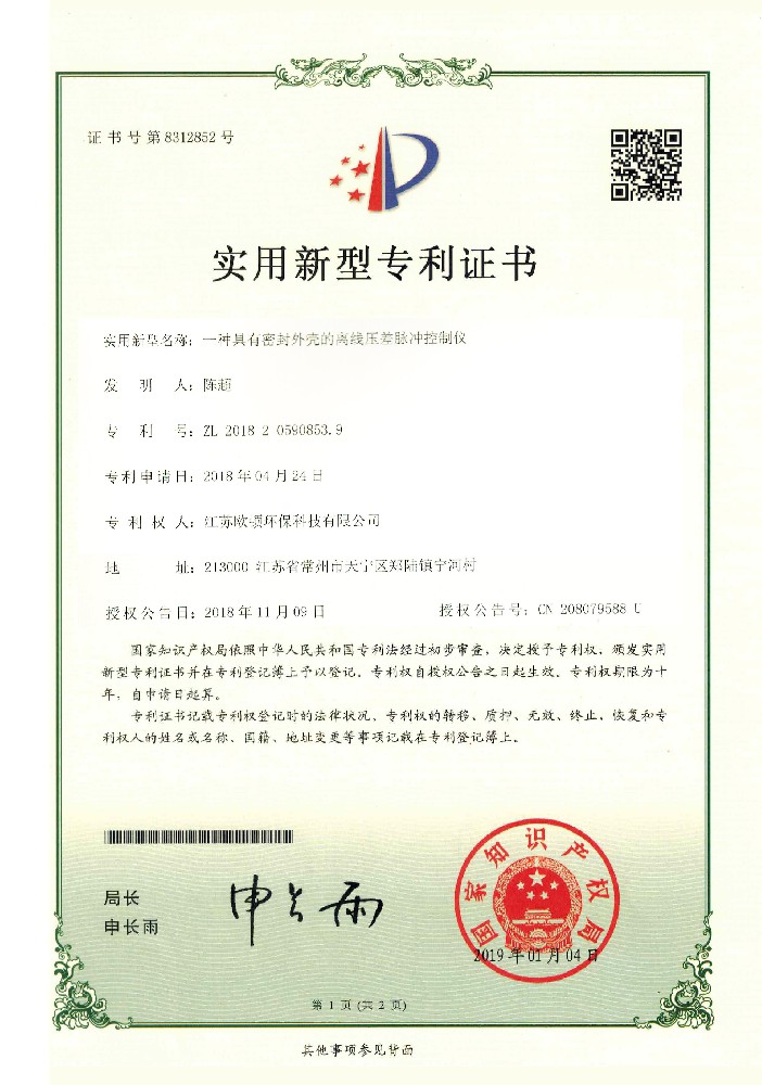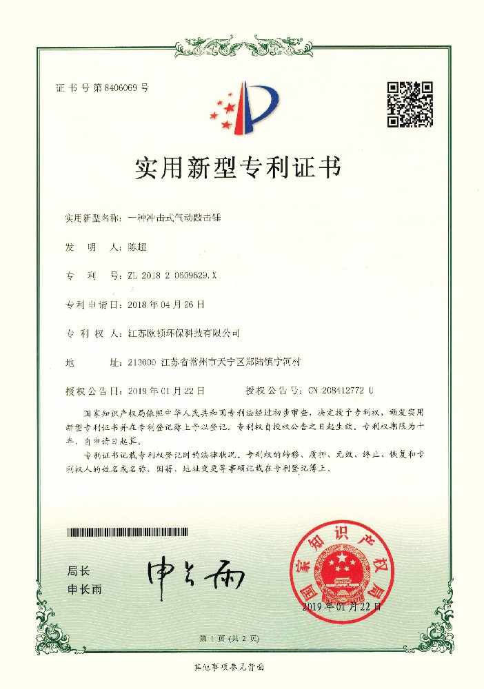 實用新型專利證書
